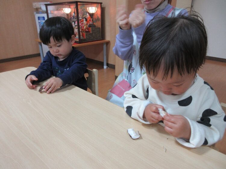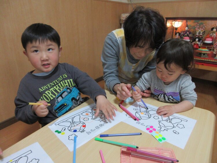 「見てみてー! お雛様のお顔が描けたよ!」