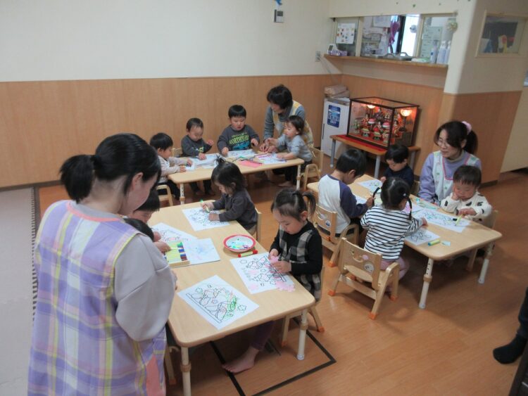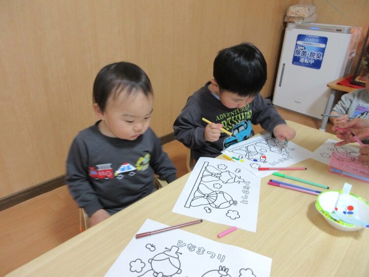 まずは「お雛様の塗り絵」に挑戦!!