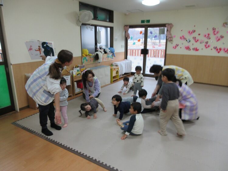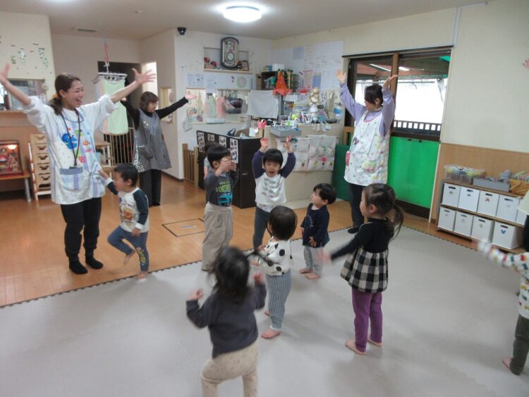 お気に入りの体操をしたり、リトミックで全身を動かして遊びます♬