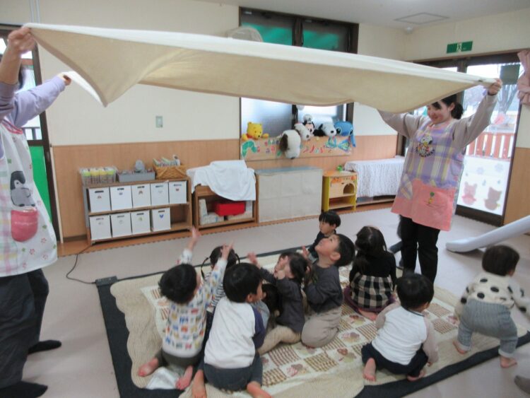 大きな毛布で布あそび♡