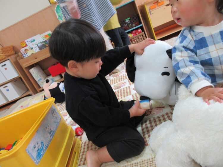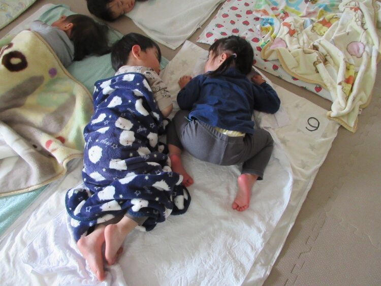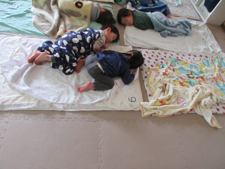 自分の布団から移動して、仲良しのお友だちの隣へ移動。