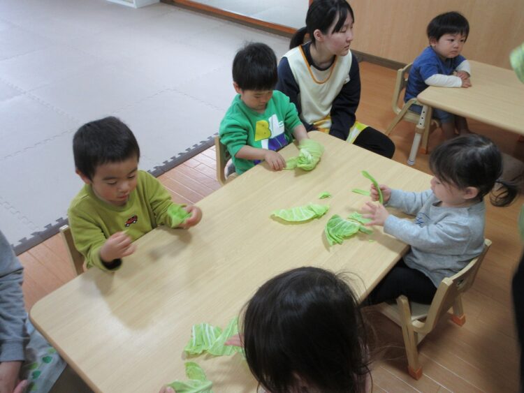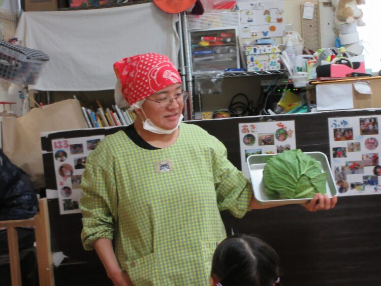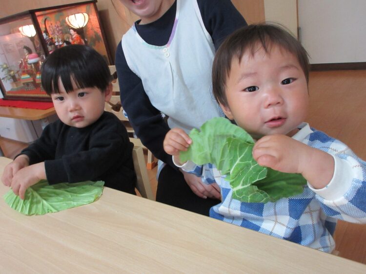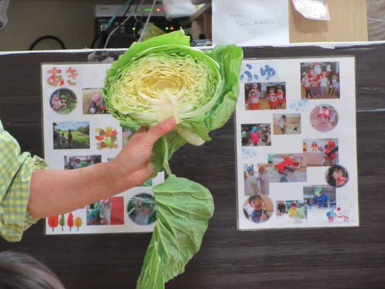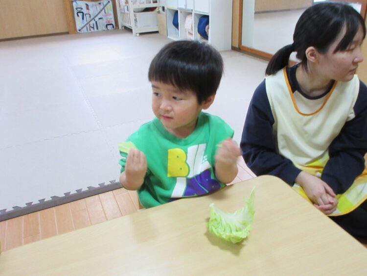 葉っぱがいっぱい重なったお野菜って、な~んだ?の質問に、「う~ん??キャベツかなぁ…」と答えてくれたパンダさんでした🐼