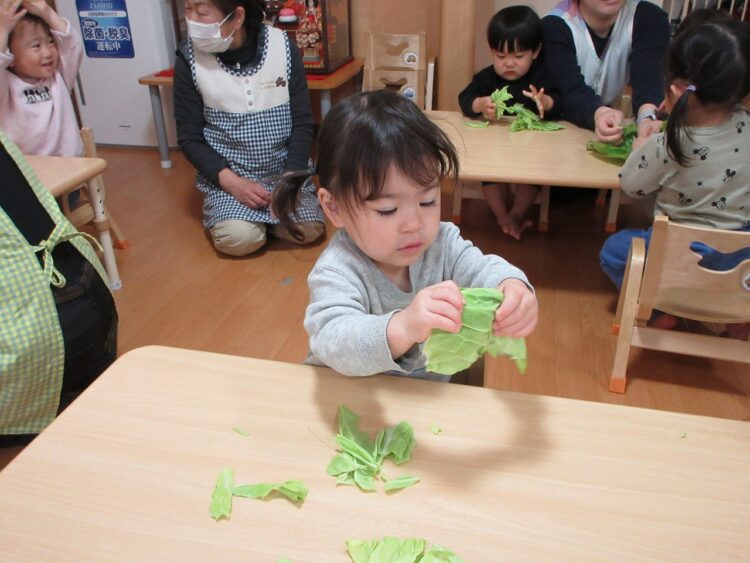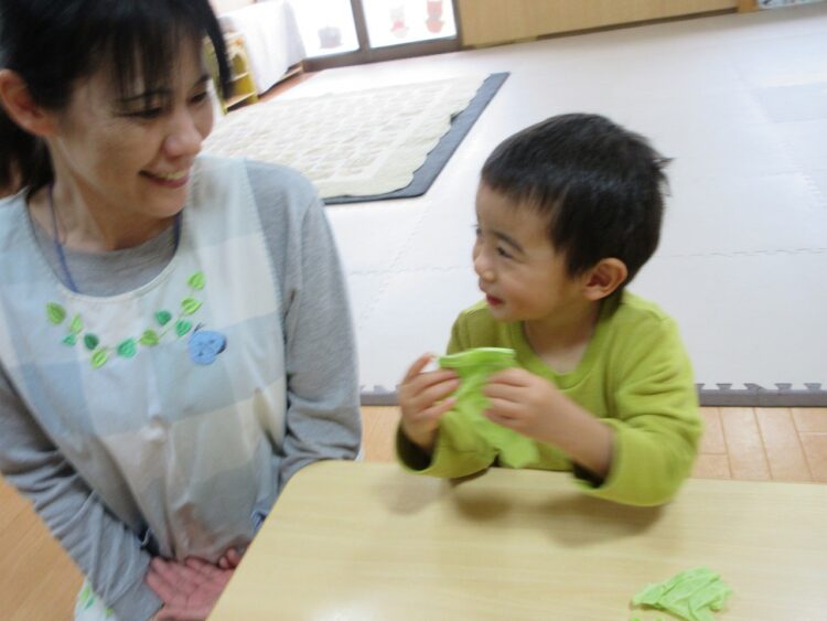 うわぁ~!!〇〇ちゃんのお顔より大きな葉っぱだね(≧▽≦)