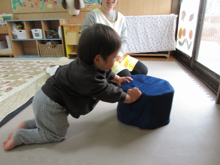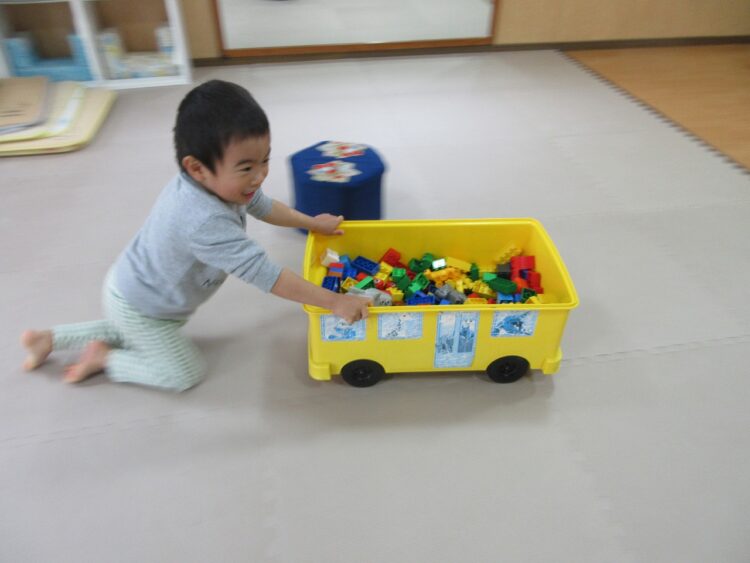 「よいしょ! よいしょっ!」と重たいマルチブロックを、押してどこかへ運んでいます。