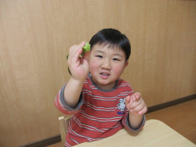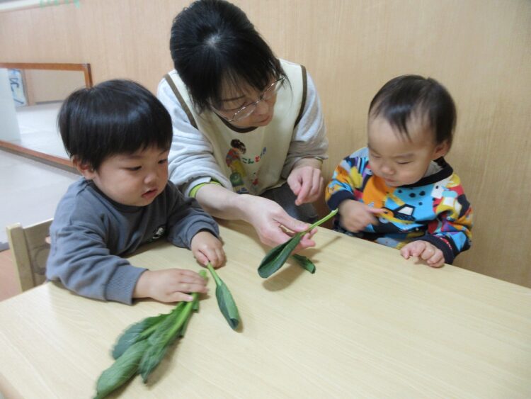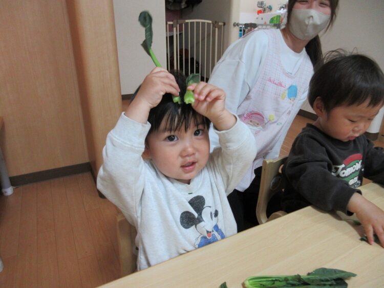 「ほらっ!お尻が赤くないよ!! これは、小松菜!」