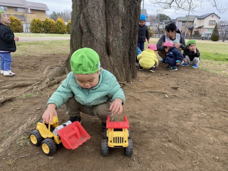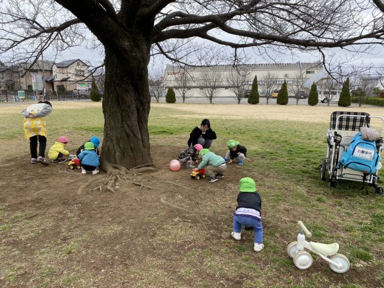 広場にある大きな木の下が、さくらんぼさんのいつもの場所です♬