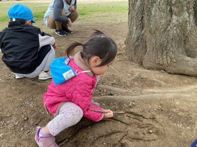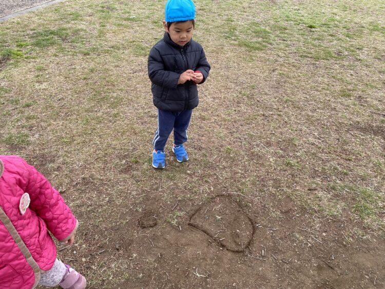 木の枝を使って、お絵描きなどをして楽しんでいます♬