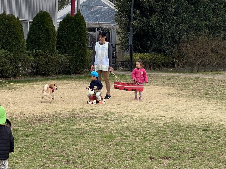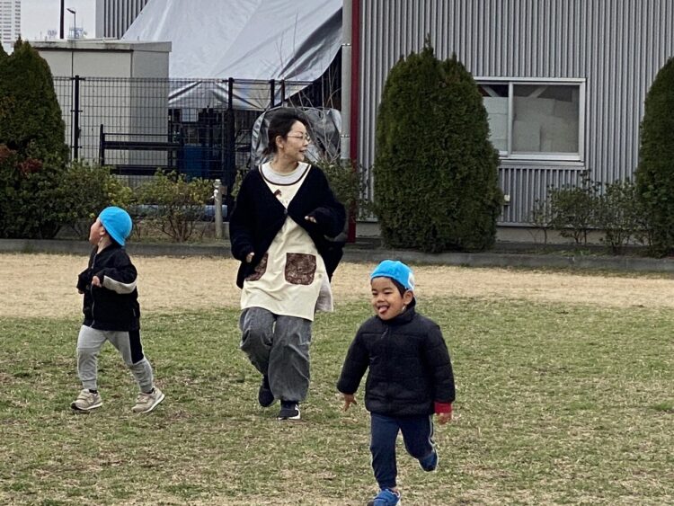 追いかけっこをして遊ぶと、身体はぽかぽかです。