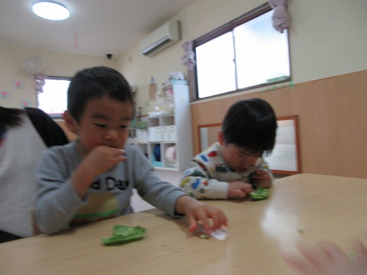 お休み明けで出勤してきた私(園長)に、「お休みして、どこに行ってたの?」「事務所でお仕事してなかったじゃん!」「お勉強してたの?」「病院?」「黒糖、買ってきて来てくれた?」(笑)等々、たくさんの質問攻めに…(笑)