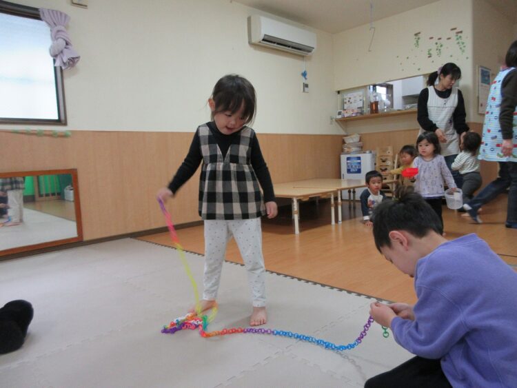 雨上がりでしたが、風もあたたかく、遊んでいるとぽかぽか体はあたたかくなり、上着を脱いで遊べるくらいのお天気になりました。
