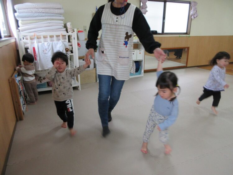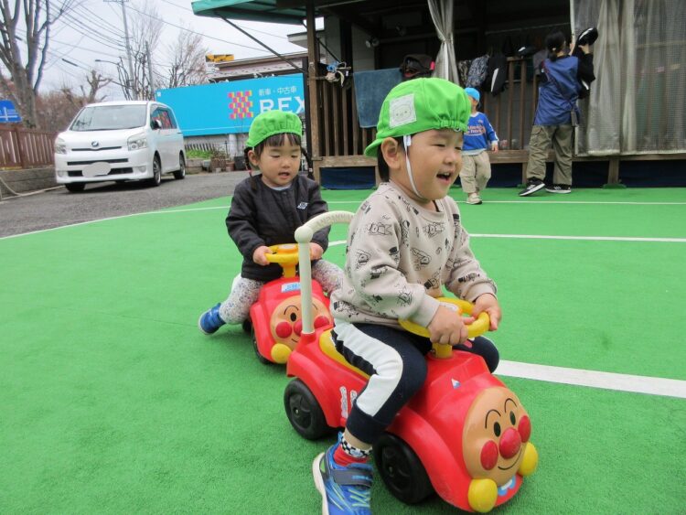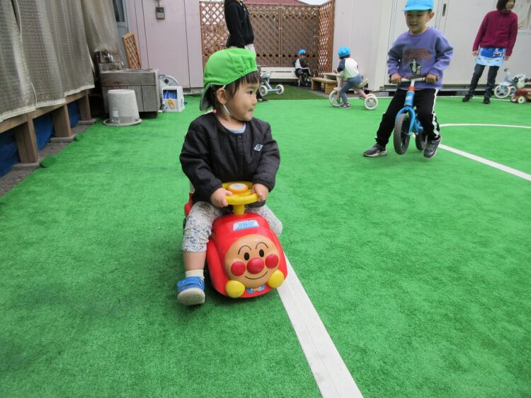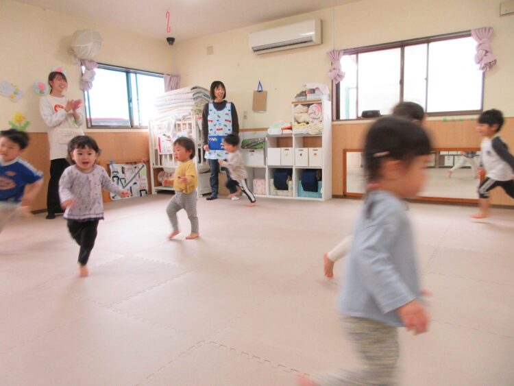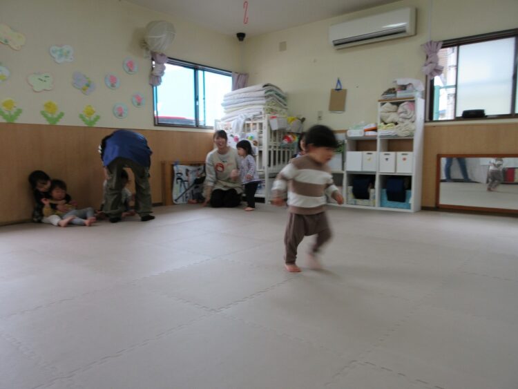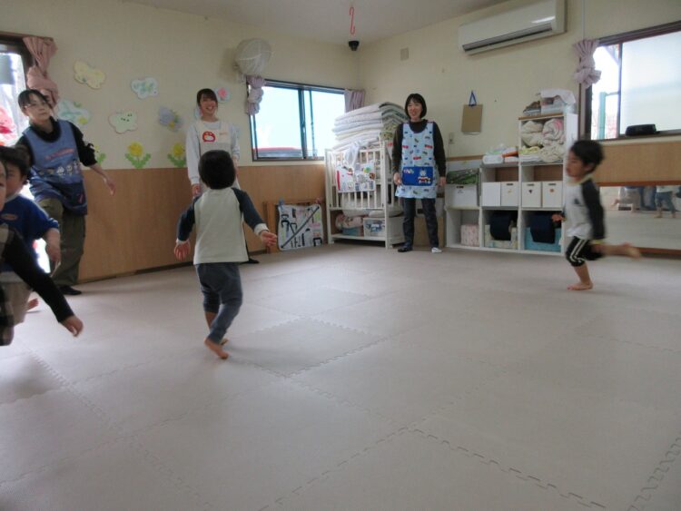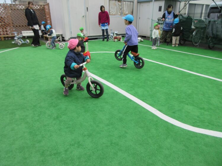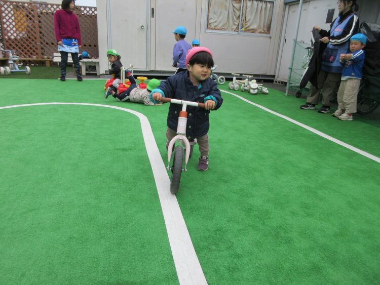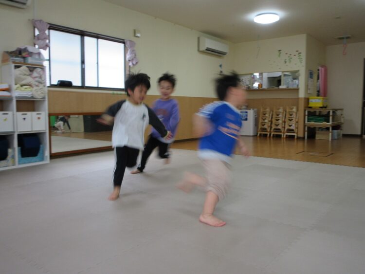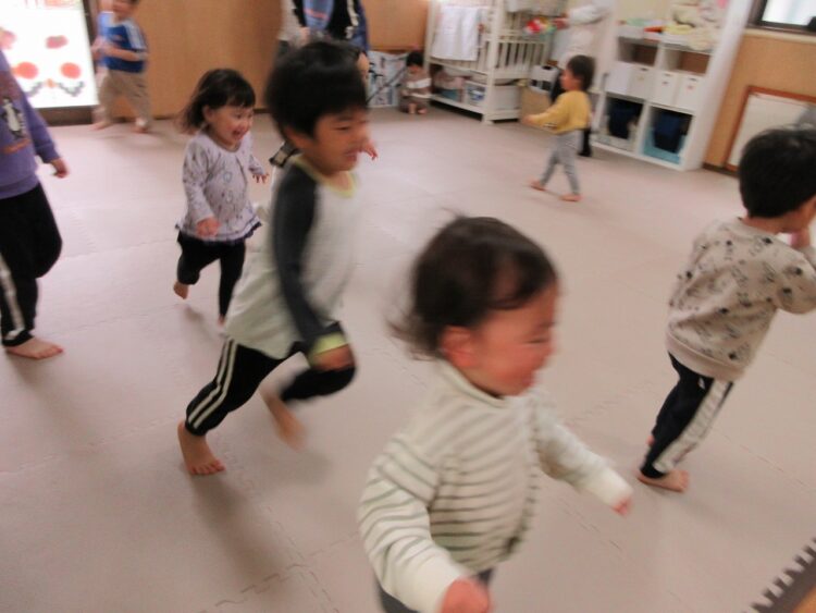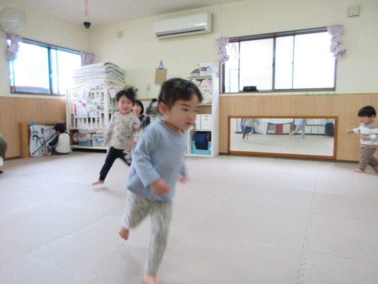 お友だちにぶつからないよう、前をしっかり見て走ってね。