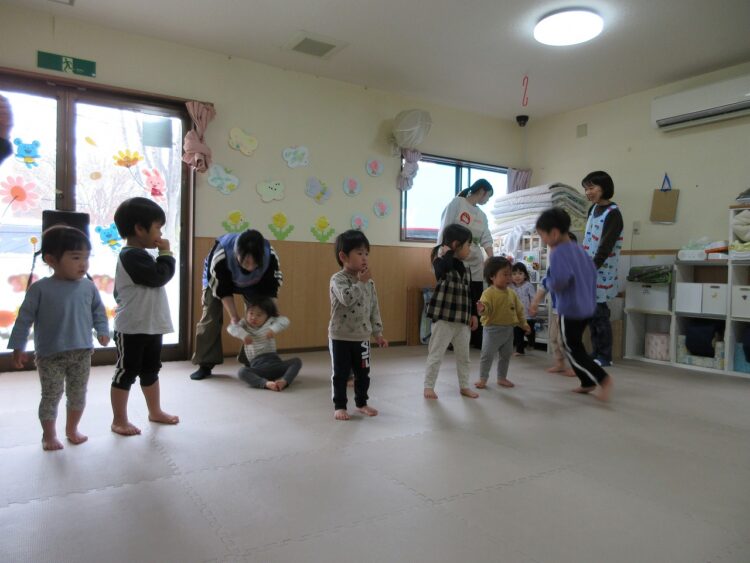 お散歩に行く前に、体操をして心と身体をほぐします♬