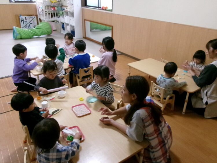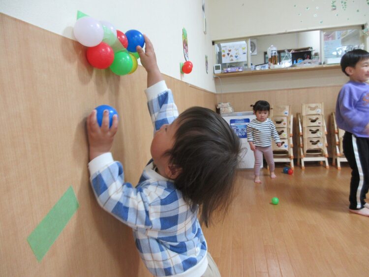 お部屋の中でも楽しく過ごせるよう、保育士さんが工夫をしてくれています(´ω`*)