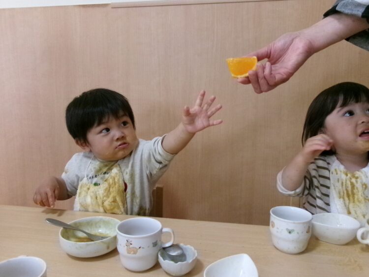 「誰か、みかん分けてくれえないかな~」というかのように喃語でおしゃべりしてました(笑)