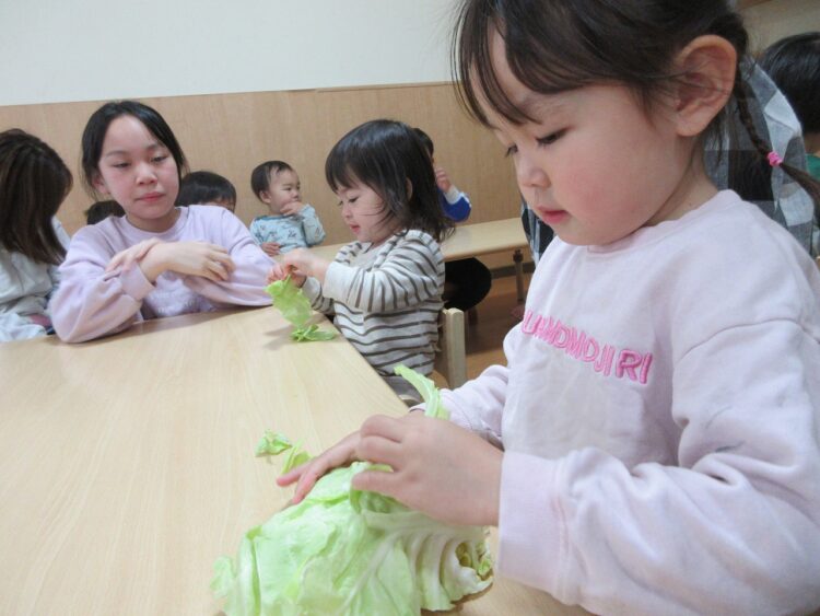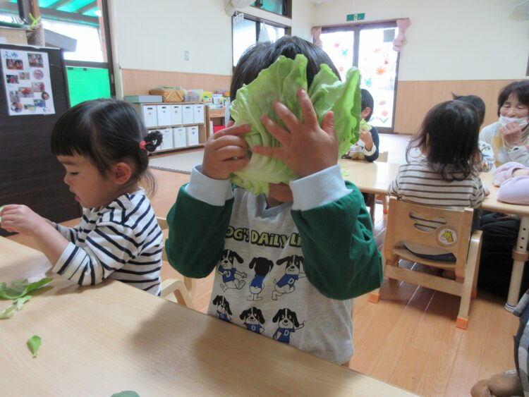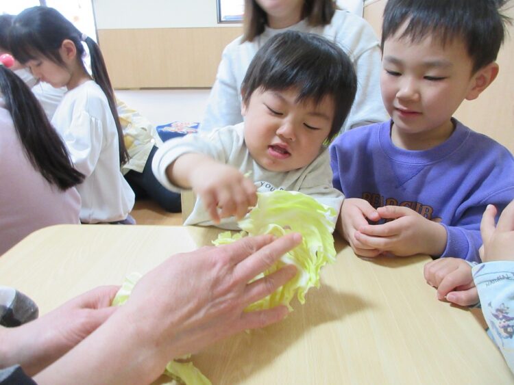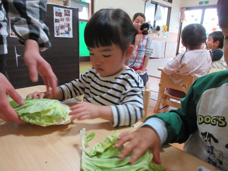 春キャベツの感触は、「やわらかい」と教えてくれた〇〇ちゃん。