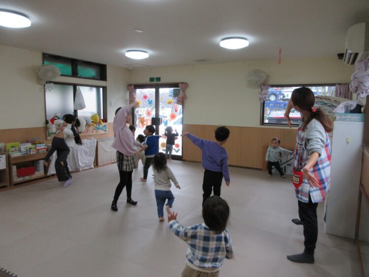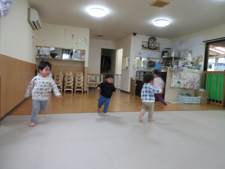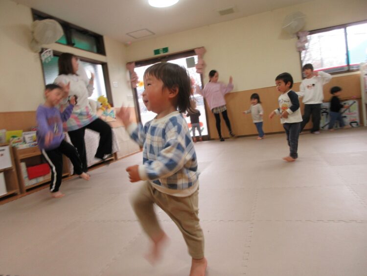 雨でも、お部屋の中っでいっぱい身体を動かして遊んでいます♬