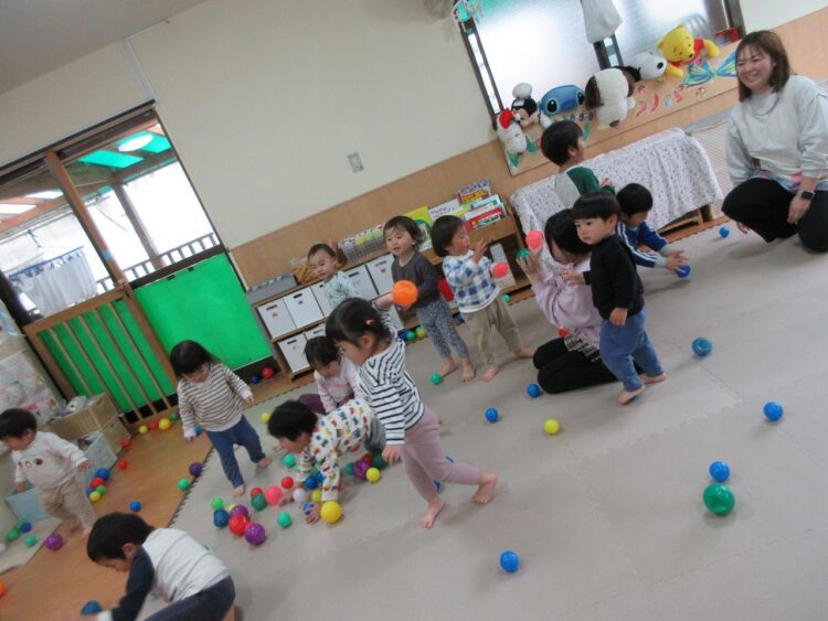 沢山のボールに、「キャー♡」と大喜び(≧▽≦)