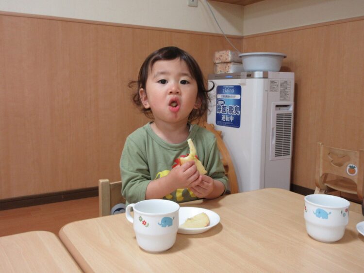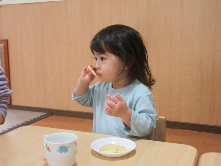 さくらんぼでは、食べやすく、誤飲しないよう円盤のように丸く薄切りにして提供しています。