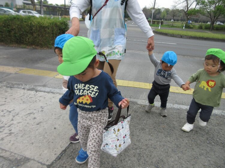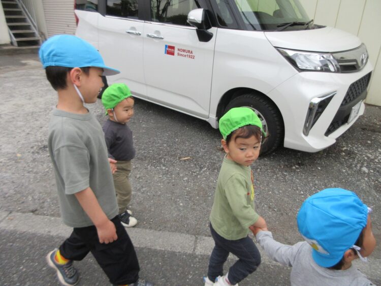 ぱんだグループさんとうさぎグループさんは、保育園の周辺をぐるっとお散歩に出かけられました♬