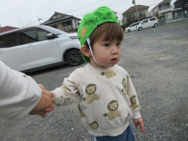 避難車を使わず、お手々を繋いでお散歩です(^<^)
