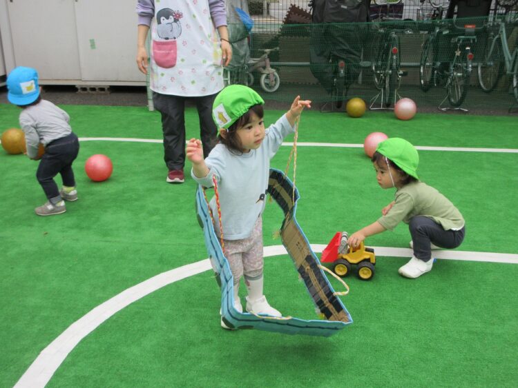 お友だちのしていることに興味を示して、まねっこをしたり…