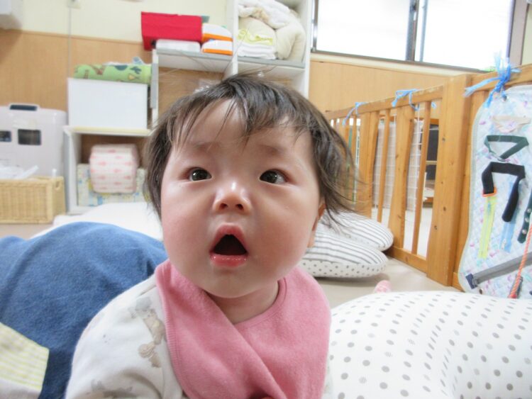 周りの保育士の顔をインプット中の〇〇ちゃん。