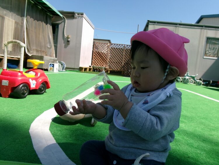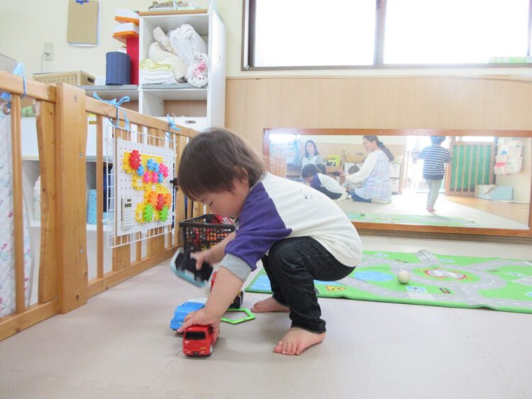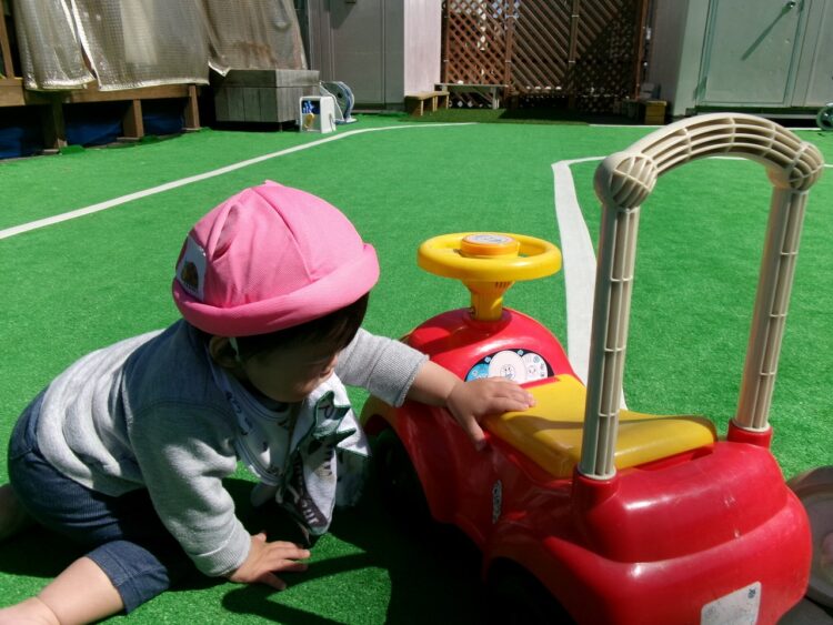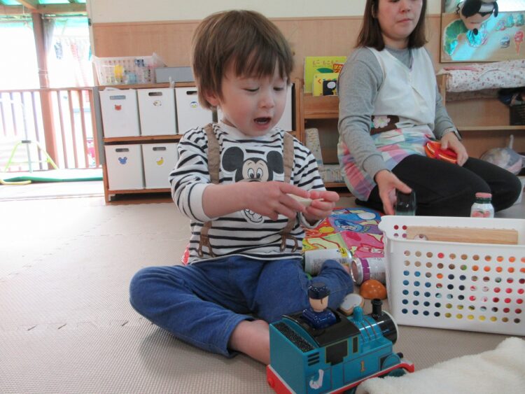 甘えん坊の〇〇君ですが、気になるおもちゃを見つけるとスス―っと保育士を離れて遊べるようになってきています。