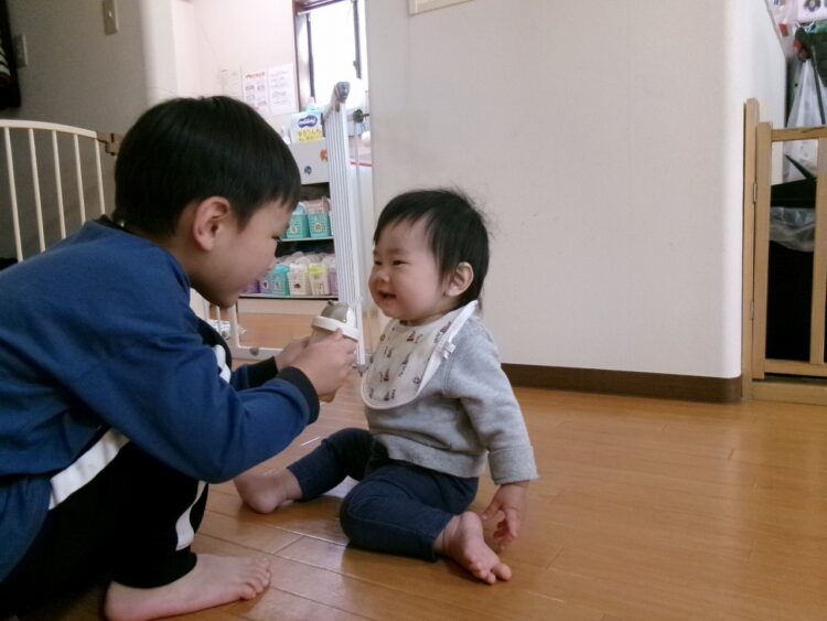 お手伝いに来ているお兄ちゃんに、お茶を飲ませてもらったり…