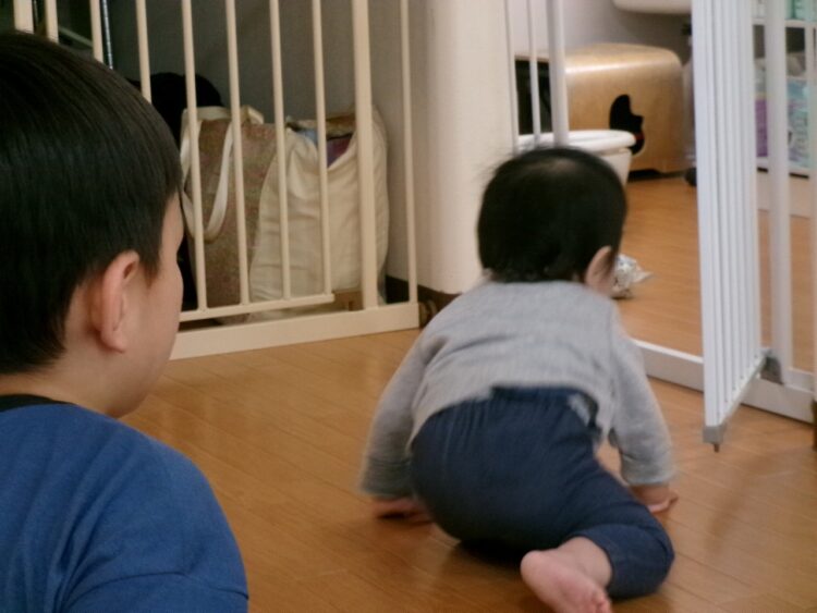 特に、足元で動くものや、落ちている小さなものに興味津々。
