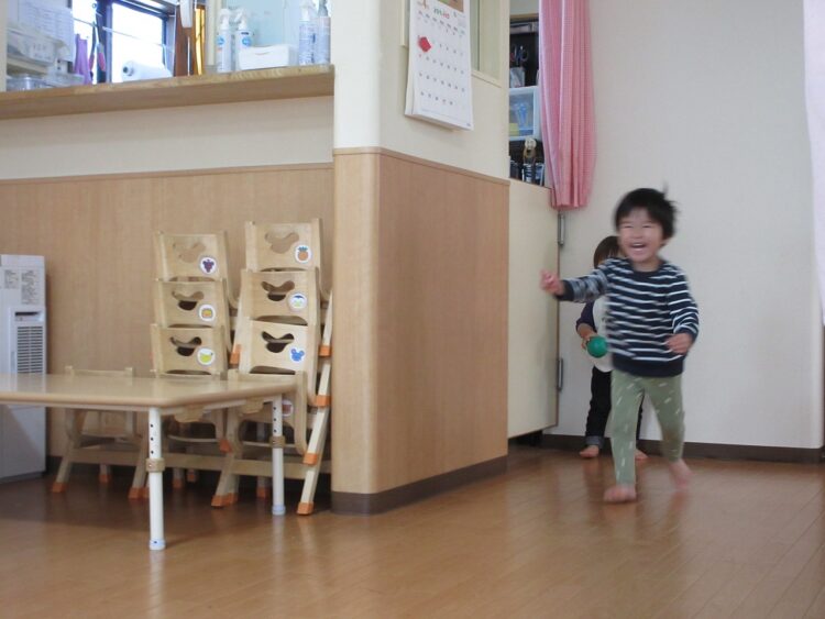 「待てまてー!」と追いかけっこをして遊び、元気な笑い声が聞こえてきました♬