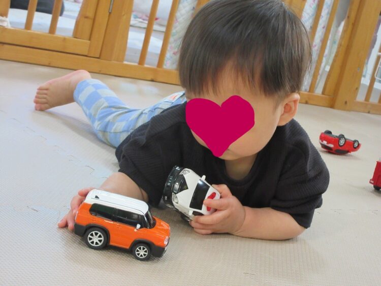 〇〇君は、お気に入りの車のおもちゃに夢中〜♡