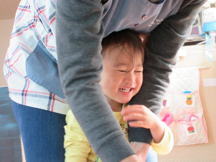 〇〇君は、保育士さんとじゃれ合って楽しそう(≧▽≦)