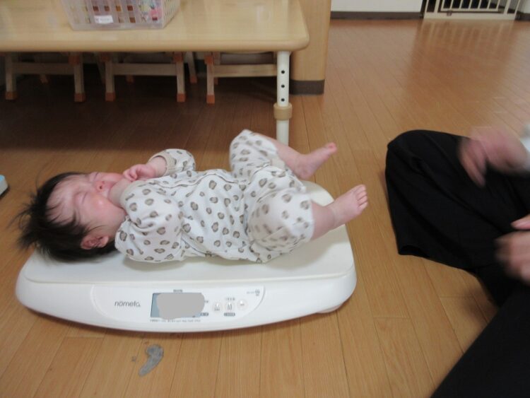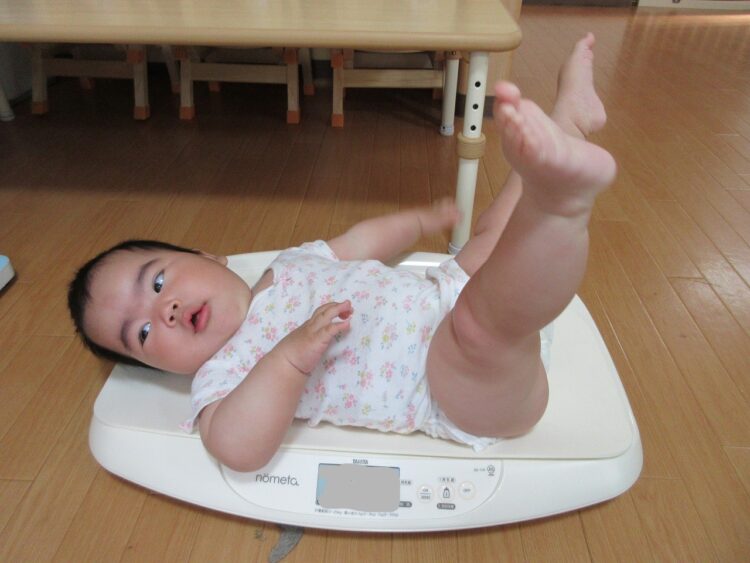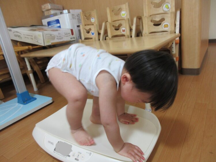 「僕は一人で体重計に乗れるよ♬」