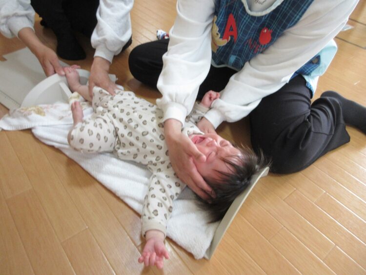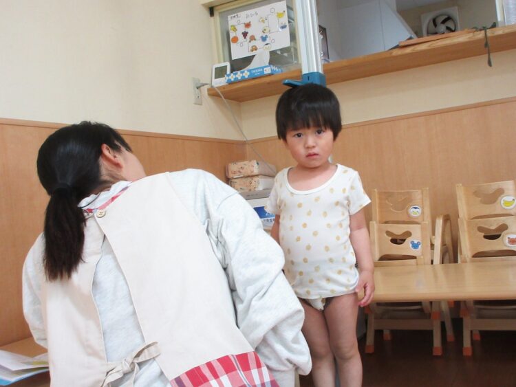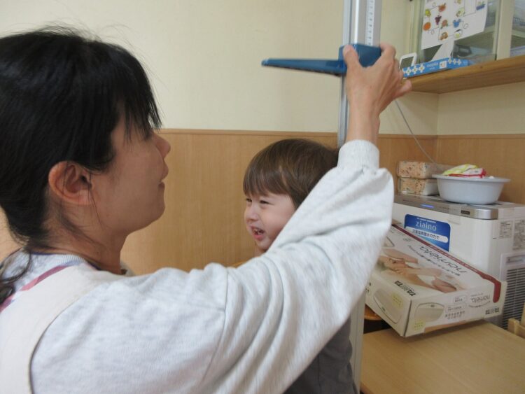 進級児さんは、「大きくなったかなするよー」の声掛けに、すぐに駆け寄ってきてくれます。