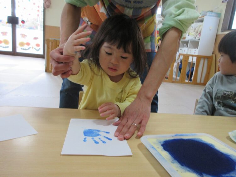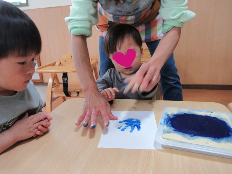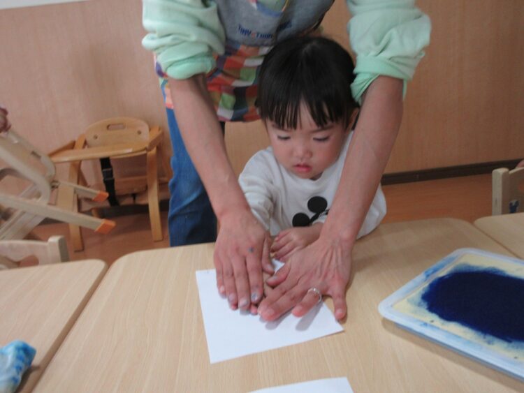 お手々にスタンプ台でインクを付けて…